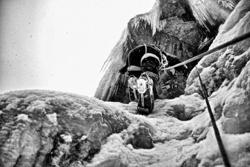 Selected as one a Black Diamond photo submission of the week in 2013, this photo was taken in New Hampshire while ice climbing at the Frakenstein Cliffs.